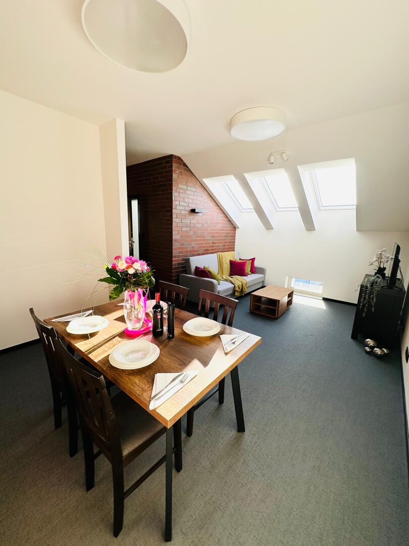 Loft Grojec Apartment is a comfortable one-bedroom apartment located in the center of Żywiec – ideal for up to 4 guests. The apartment features a cozy living room with a sofa bed, a separate bedroom, a fully equipped kitchen, a bathroom, as well as free